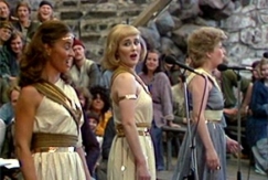 Savonlinnan oopperajuhlien väki vaihtoi vapaalle vuoden 1982 Oopperajuhlien päätöskaronkassa ja tulkitsi kevyen musiikin sävelmiä omalla tyylillään.